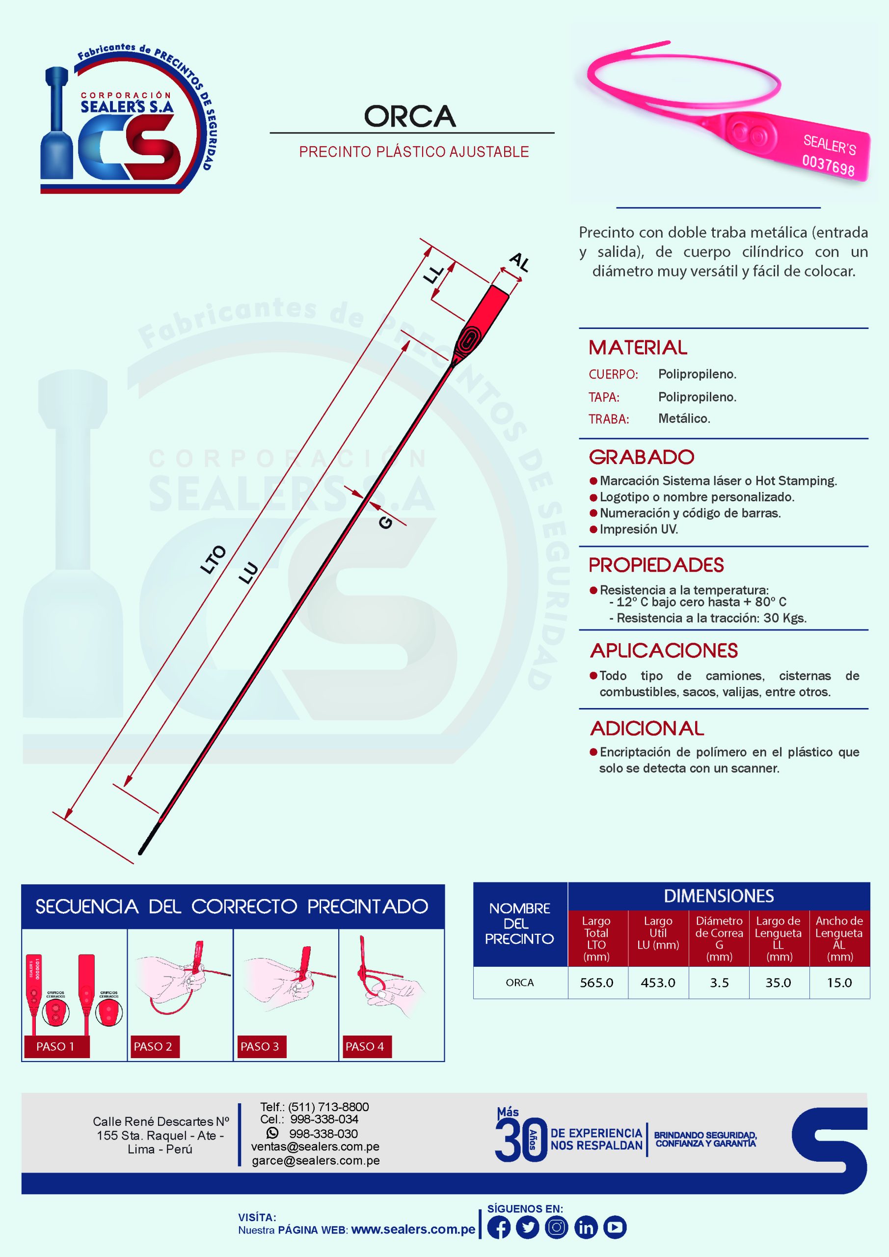Precinto de seguridad de plástico con doble traba metálica entrada y salida. Tiene un cuerpo cilíndrico con un diámetro muy versátil y fácil de colocar.
