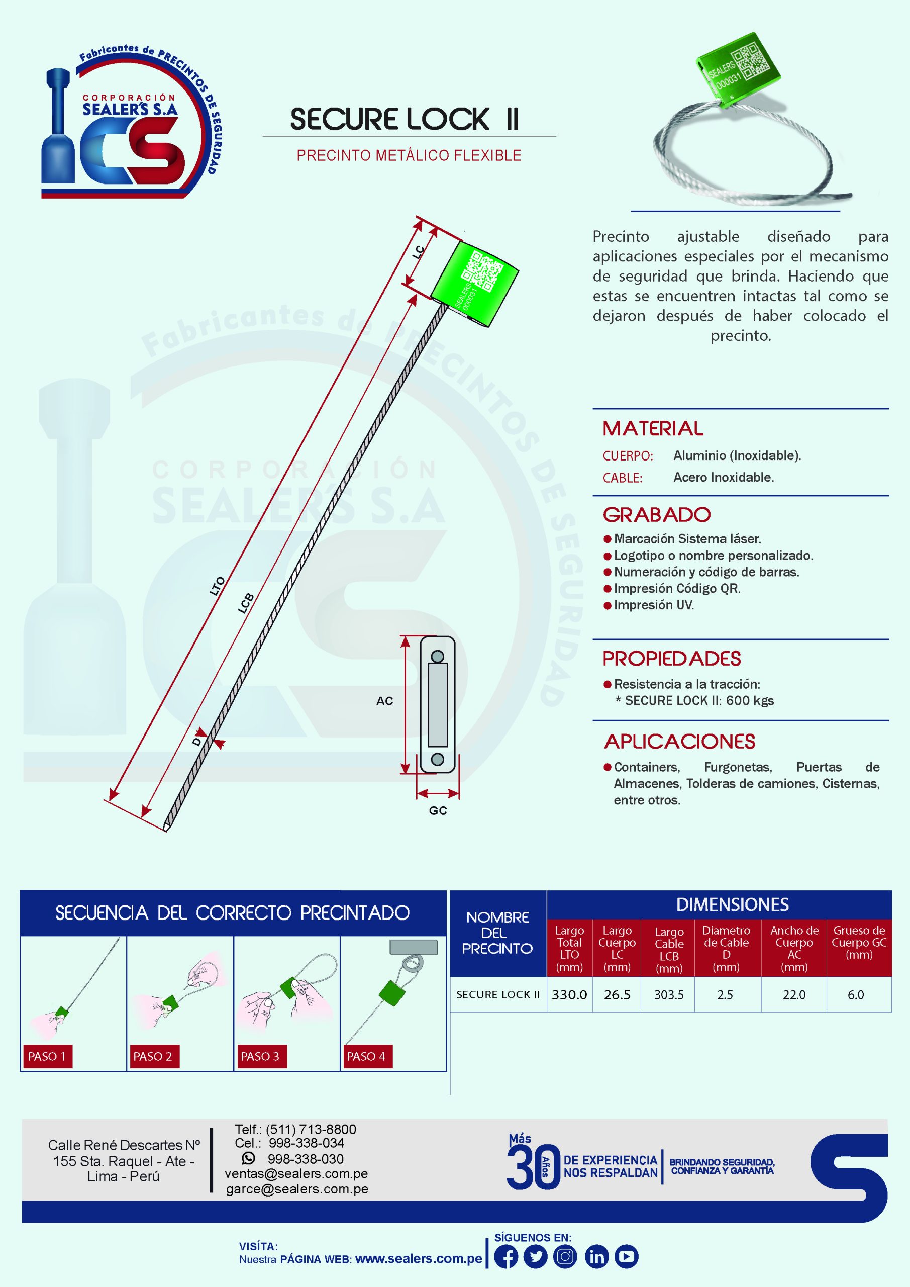 Precinto ajustable diseñado para aplicaciones especiales por el mecanismo de seguridad que brinda. Haciendo que estas se encuentren intactas tal como se dejaron después de haber colocado el precinto.
