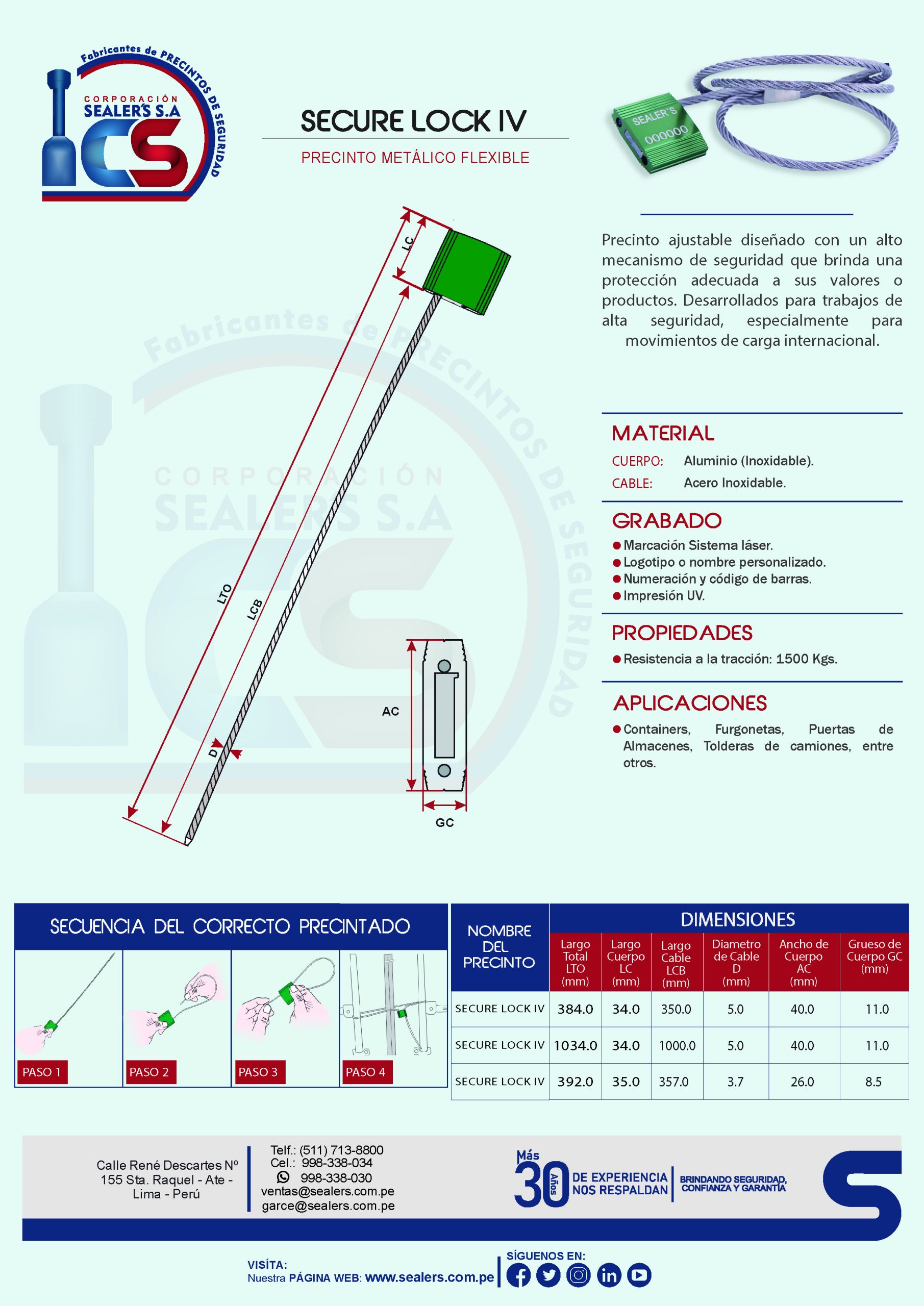 Precinto aduanero metálico ajustable diseñado con un alto mecanismo de seguridad que brinda una protección adecuada a sus valores o productos. Desarrollados para trabajos de alta seguridad, especialmente para movimientos de carga internacional.