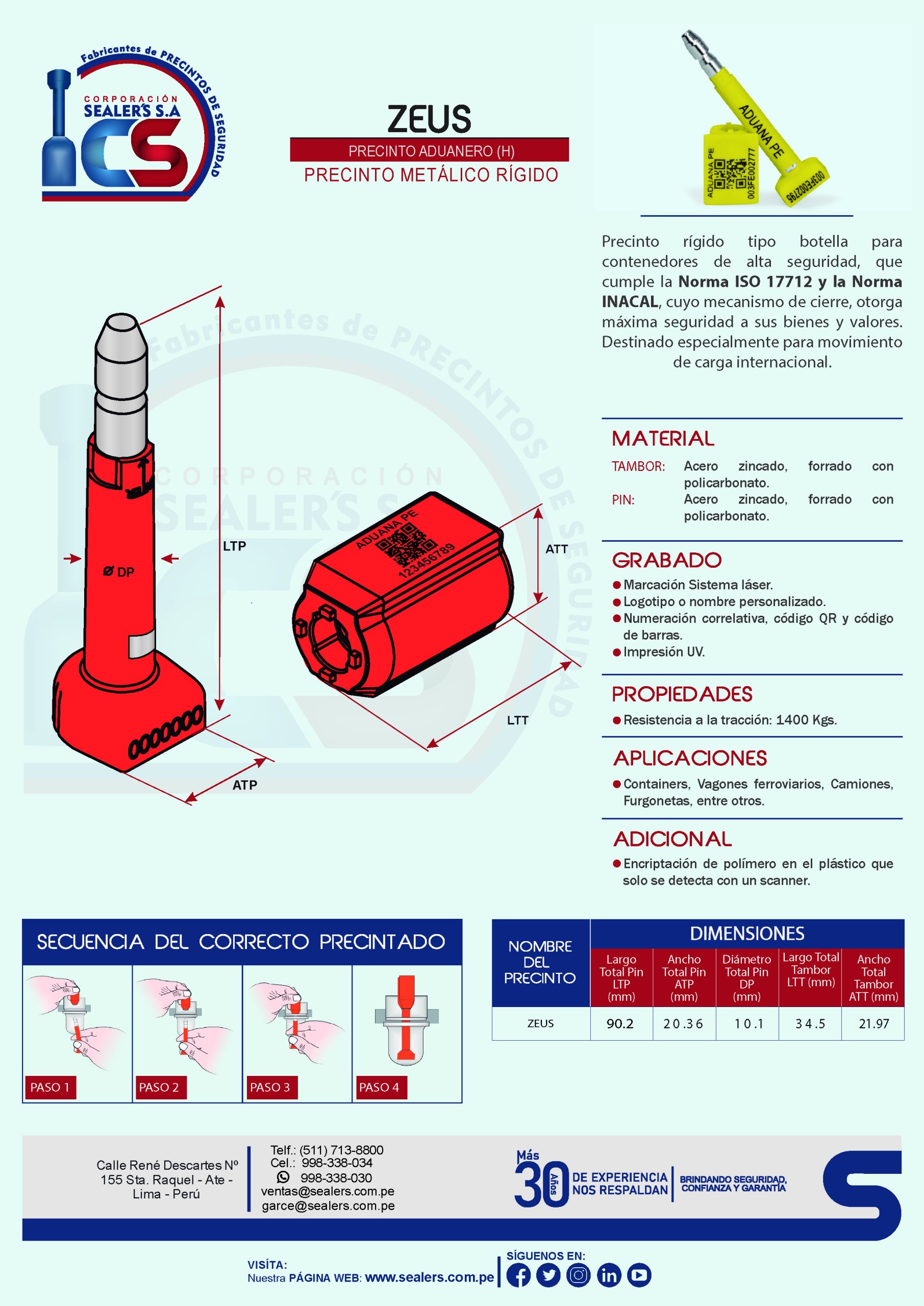 Precinto Aduanero tipo botella. Es utilizado en contenedores. Cumple con la Norma PE.00.08 de la SUNAT, Norma ISO 17712 y la Norma INACAL. Otorga máxima seguridad a sus bienes y valores.